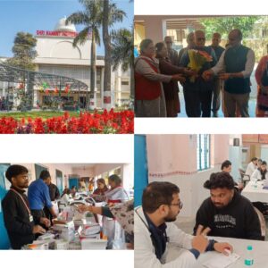 देहरादून। श्री गुरु राम राय विश्वविद्यालय तथा श्री महंत इन्दिरेश अस्पताल, देहरादून के संयुक्त तत्वावधान में रविवार, 23 नवम्बर 2025 को आर्य समाज मंदिर, सुभाष नगर में कैंसर जागरूकता एवं निःशुल्क स्वास्थ्य परीक्षण शिविर अत्यंत सफलतापूर्वक सम्पन्न हुआ। शिविर में 602 मरीजों ने विभिन्न स्वास्थ्य सेवाओं का लाभ उठाया। श्री महंत इन्दिरेश अस्पताल के विशेषज्ञ चिकित्सकों ने मरीजों की जांच कर उन्हें “स्वस्थ जीवन सबसे मूल्यवान पूँजी है” का संदेश देते हुए परामर्श एवं दवाइयाँ निःशुल्क प्रदान कीं।